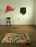 "Curtain" 2013 Alternate panels of photograph and paint 150 x 210 cm.jpg 1,200 × 897; 588 KB